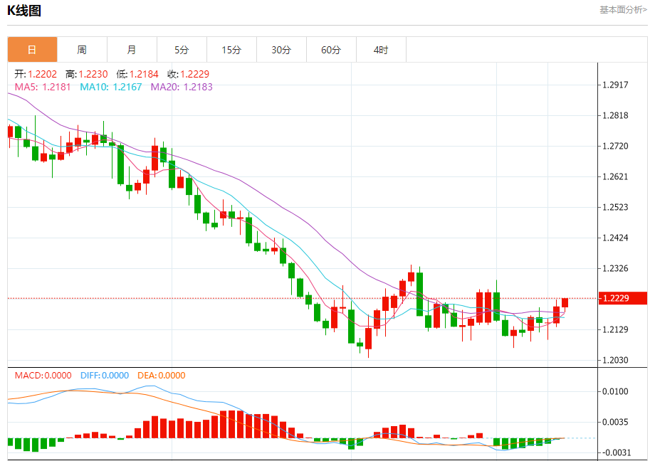 周五欧市盘中,英镑兑美元交投于1.2230,涨幅为0.22%。