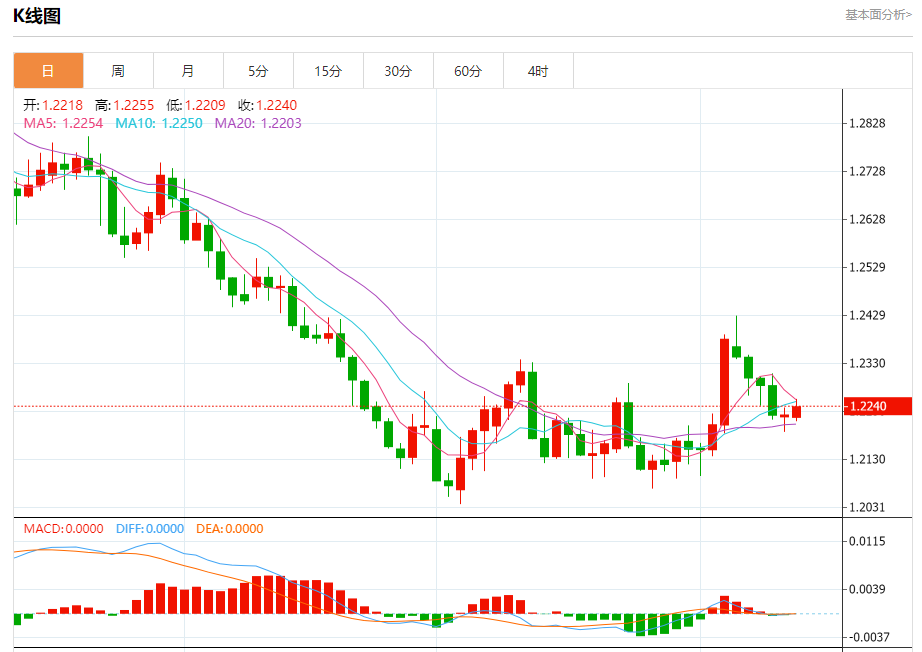 周一欧市盘中,英镑兑美元交投于1.2241,涨幅为0.14%。