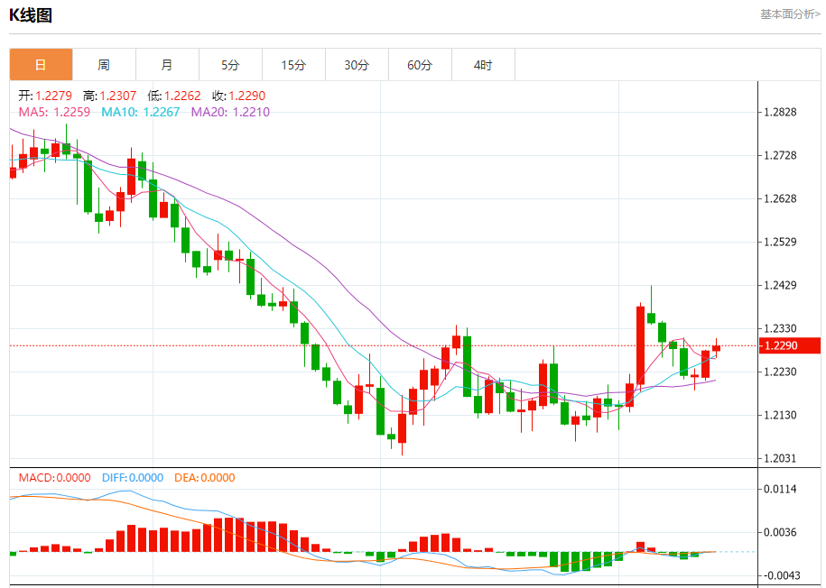 周二欧市盘中,英镑兑美元交投于1.2291,涨幅为0.09%。