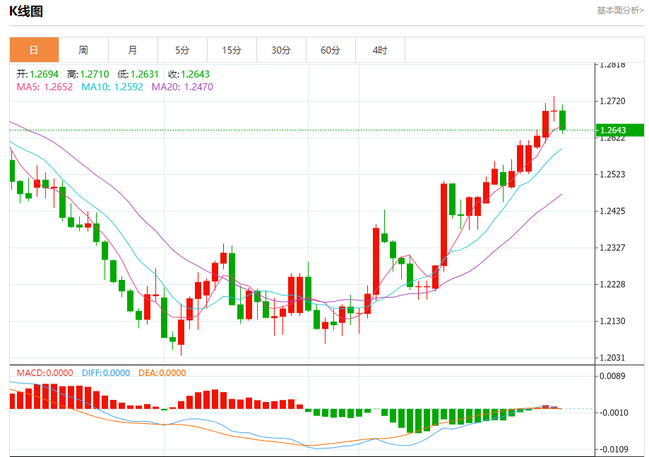 周四欧市盘中,英镑兑美元交投于1.2644,跌幅为0.40%。