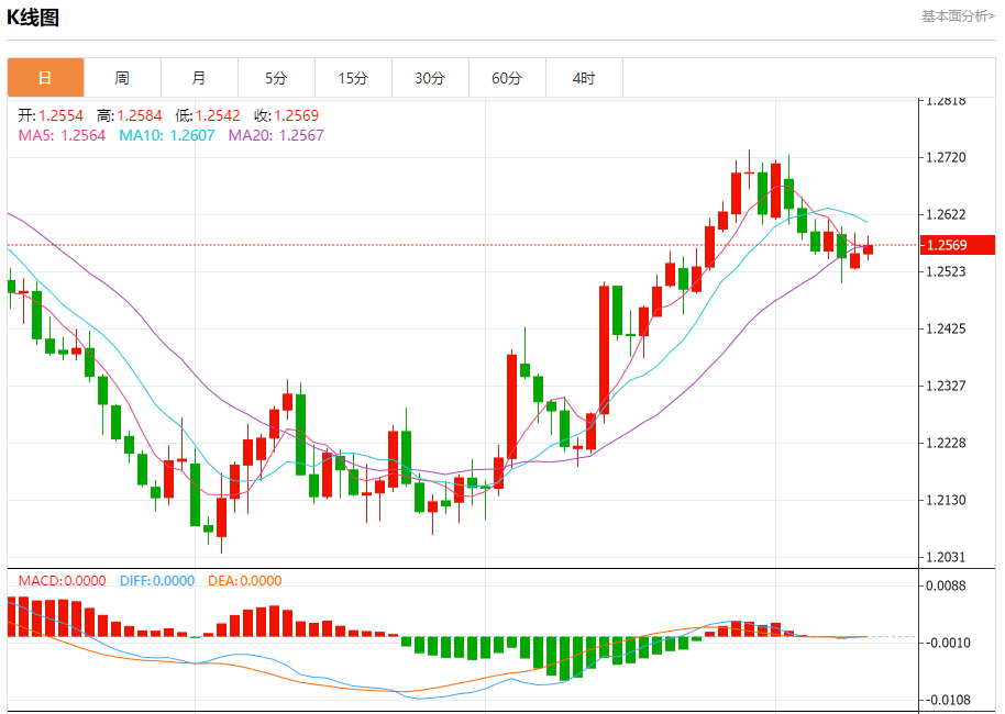 周二欧市盘中,英镑兑美元交投于1.2570,涨幅为0.11%。