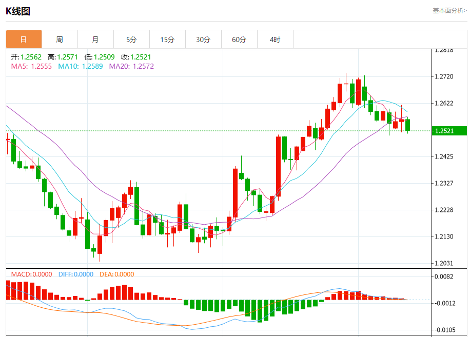 周三欧市盘中,英镑兑美元交投于1.2523,跌幅为0.32%。