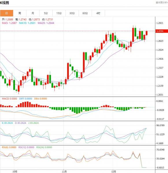 交易策略:日内建议谨慎操作,关注1.2700一线阻力表现决定进一步方向。