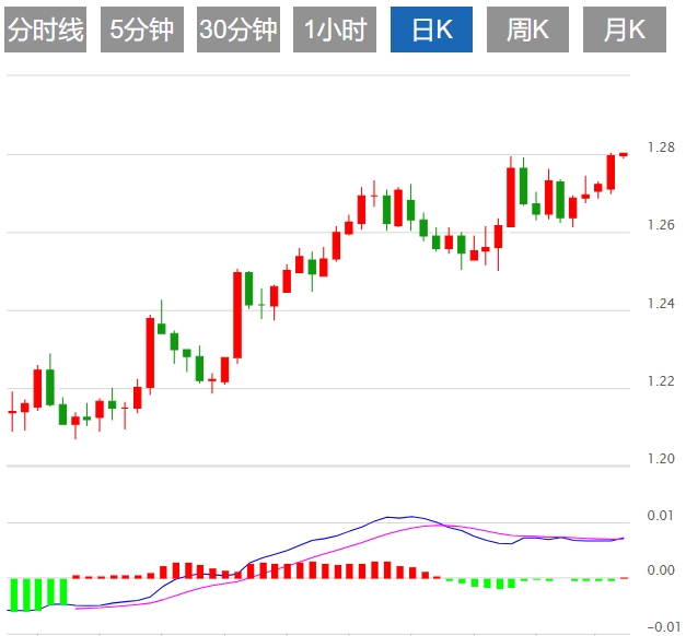 英镑兑美元周三触及19周高点,该货币对在过去九个交易周中有八个交易周收盘上涨。该货币对从 50 小时简单移动平均线 (SMA) 反弹,因为盘中行动牢牢锁定了风险偏好,将英镑推入 1.2800 手柄附近的天花板。