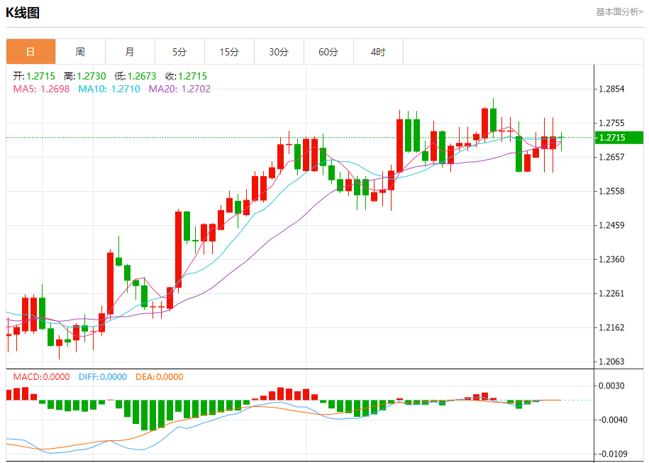 周一欧市盘中,英镑兑美元交投于1.2720,涨幅为0.02%。
