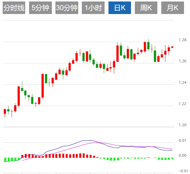 今日预期交易区间在1.2700支撑位和1.2850阻力位之间。