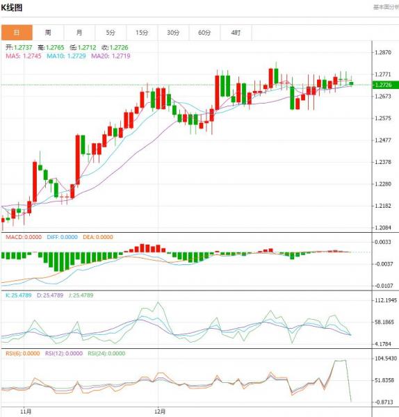 英镑本周开局略有下跌,欧洲时段,英镑/美元交投于1.2725,下跌0.21%。