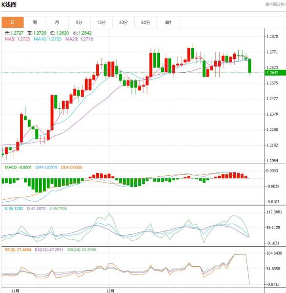 交易策略:可以在1.2760---1.2685的区间上限卖出,有效破位30个点止损,目标在区间的下限。