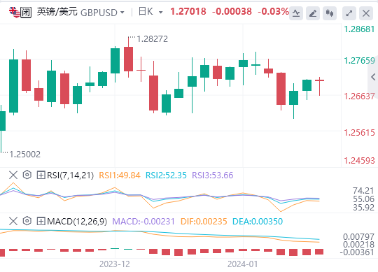 英镑兑美元汇率下跌0.14%,至1.2676,抹去了英镑本周强劲表现的一些光芒。