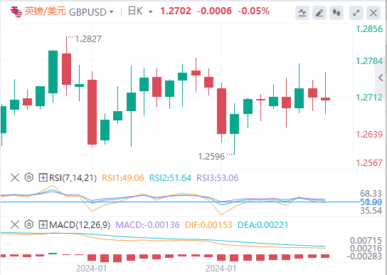 技术面上,汇价上行的初步阻力位于1.2739,进一步阻力位于1.2771,关键阻力位于1.2800;汇价下行的初步支撑位于1.2678,进一步支撑位于1.2648,更关键支撑位于1.2616。