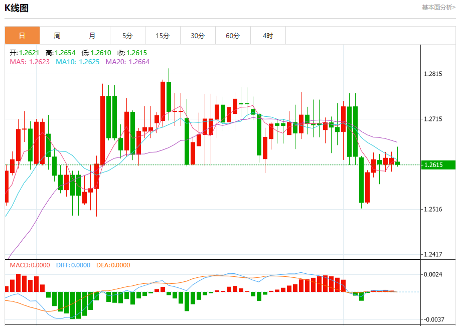 周一欧市盘中,英镑兑美元交投于1.2616,跌幅为0.11%。