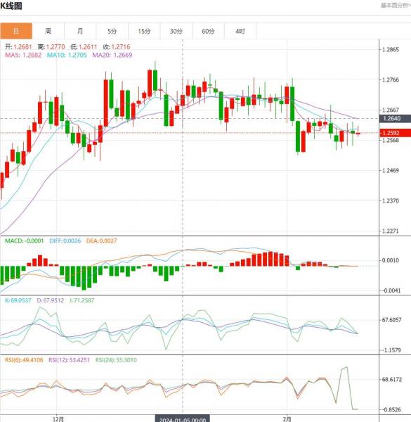 交易策略:今日关注1.2700附近的压力情况,下方支撑在1.2500附近。