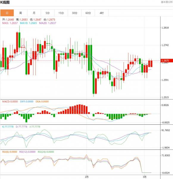 交易策略:可以在1.2705---1.2625的区间下限买入,有效破位40个点止损,目标在区间的上限。下限。