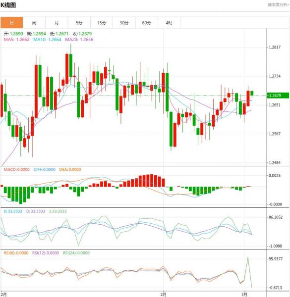 周二盘中,英镑/美元货币对为1.2679/1.2678,跌幅-0.0013。据英国泰晤士报,英国财政大臣亨特将利用他的预算,把2700万工人的国民保险进一步削减两个百分点,平均为450英镑。在决定不削减所得税后,财政大臣将把国民保险作为其春季预算的核心措施。