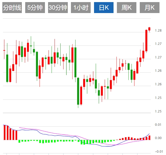 英镑/美元周四走高,此前一交易日跌破趋势线阻力位1.2715附近。如果这种突破在未来几天持续下去,多头可能很快就会挑战1.2830附近的下一个主要技术上限。突破该障碍的进一步看涨进展将照亮1.3000。