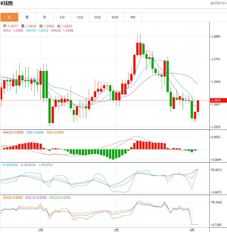 周三美市盘中,英镑兑美元上升至0.0046,增幅0.37%。英镑/美元向上触及1.26,日内涨0.18%。