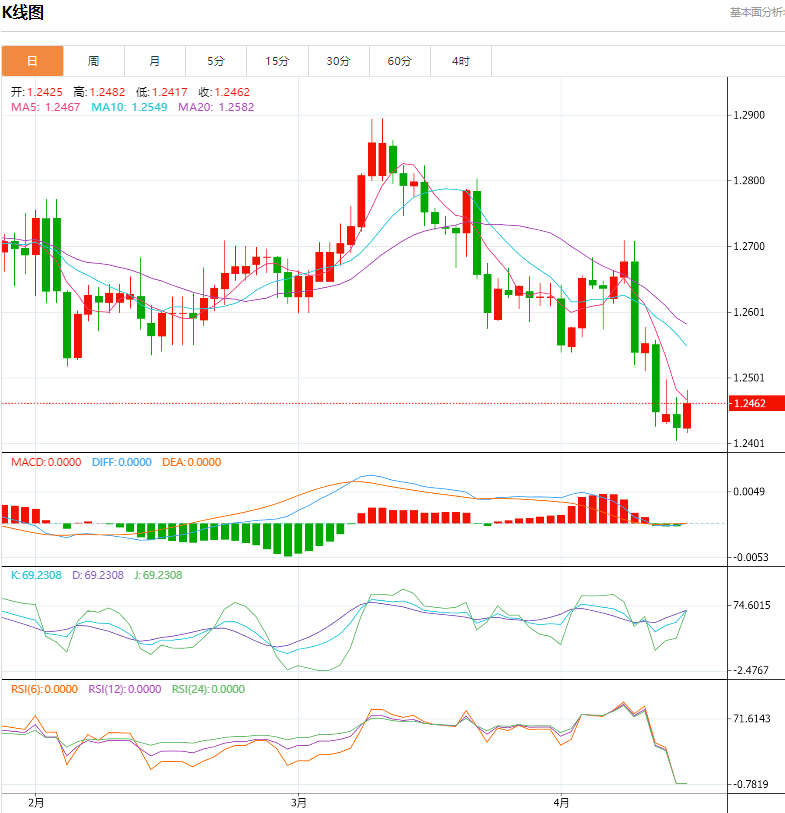 英镑在过去一周下跌 2.1%后出现反弹。欧洲时段,英镑/美元报 1.2461,上涨 0.28%。
