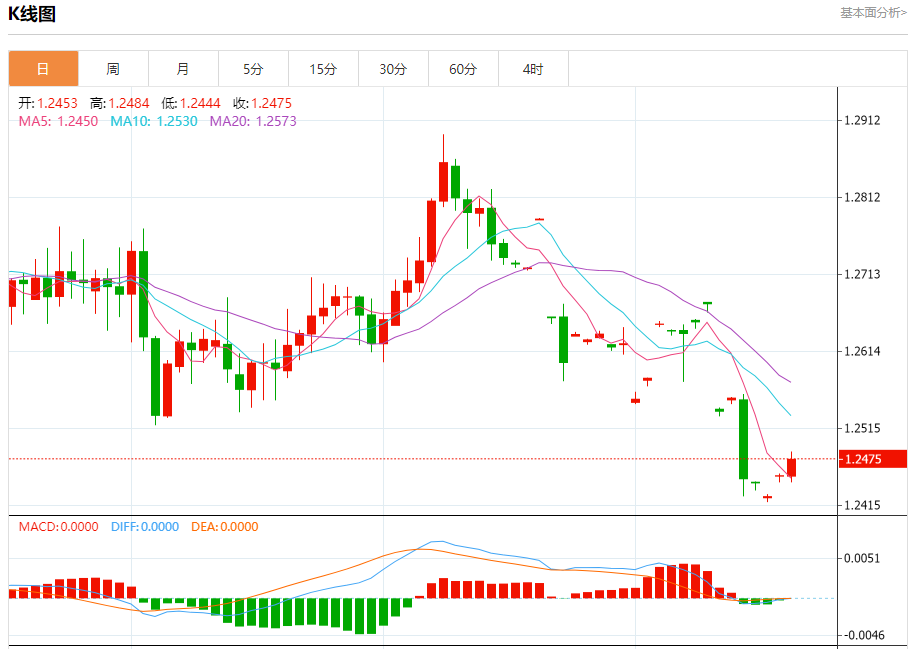 周四欧市盘中,英镑兑美元交投于1.2475,涨幅为0.17%。