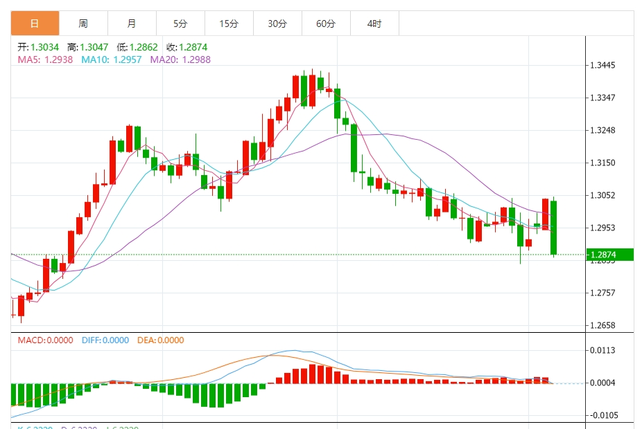 英镑兑美元今日汇率最高1.3047,最低1.2862,涨跌-0.0166,涨跌幅-1.31%。