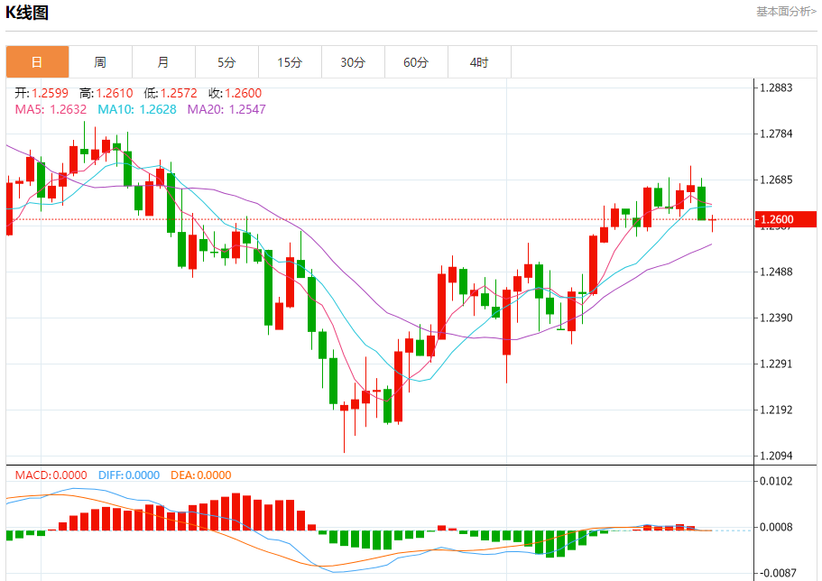 周五欧市盘中,英镑兑美元交投于1.2602,涨幅为0.01%。