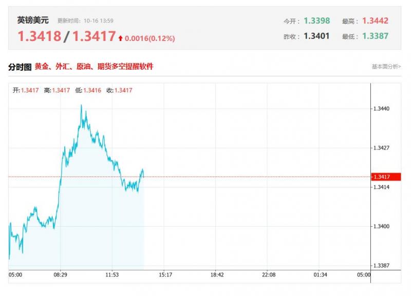 英镑兑美元今日汇率最高1.3418 ,最低1.3417 ,涨跌0.0016 ,涨跌幅0.12% 。