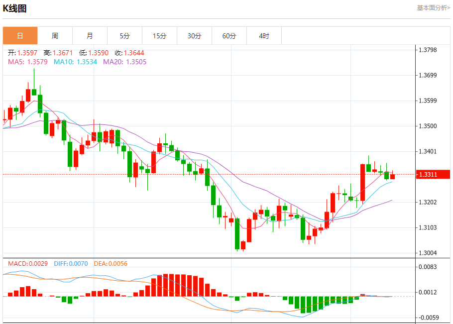 周三欧市盘中,英镑兑美元交投于1.3312,涨幅为0.12%。
