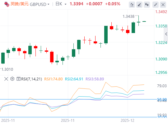 英镑/美元在本周尾稳固守多区,但拉比买盘者周四在1.3400指点遇到技术阻力点。美联储(Fed)本周连续第三次降息,增强了广泛市场的风险偏好,并推动美元整体跌入低点。