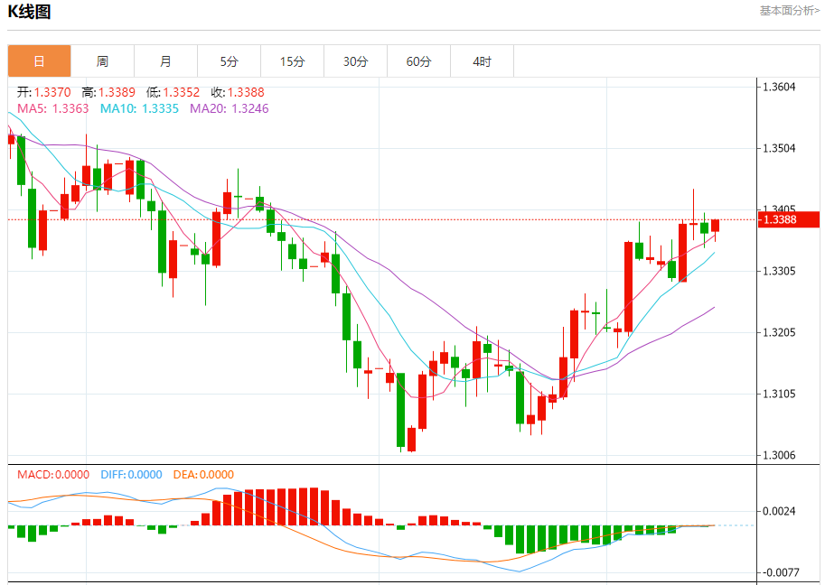 周一欧市盘中,英镑兑美元交投于1.3389,涨幅为0.16%。