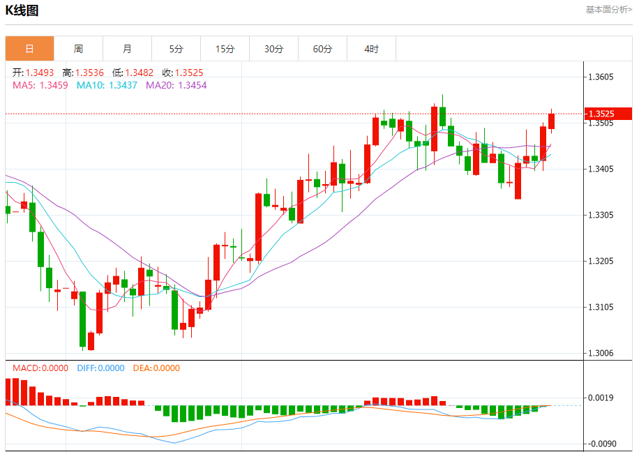 周五欧市盘中,英镑兑美元交投于1.3526,涨幅为0.20%。
