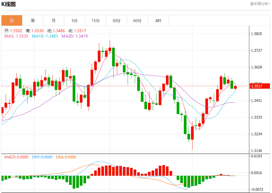 周二亚盘,英镑/美元徘徊于1.3505附近,英镑/美元周一小幅下跌,跌幅为0.4%,开启了交易周。美元反弹,扭转了上周的急剧下跌。安静的周初迎来了大量重要数据发布和关键政策声明。 市场基本面分析 英镑/美元在新交易周的开局表现疲软,开盘市场时回落约四分之一个百分点。美元(UD)削减了上周的整体损失,周一英镑