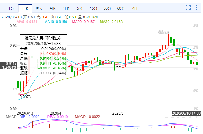 截止06-10 17:40:06,港元人民币短线下跌,现报0.9112。