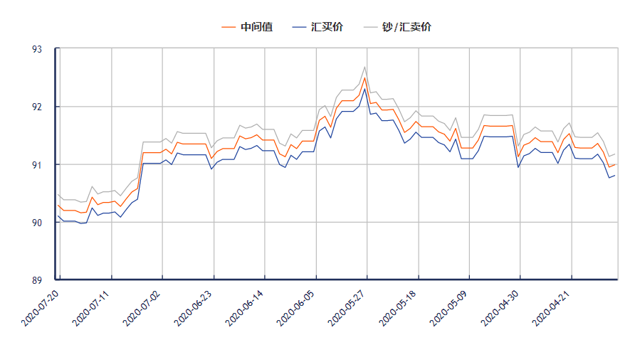 今日港币对人民币汇率走势图(2020年7月20日)