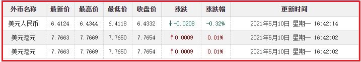 美元对港元汇率: