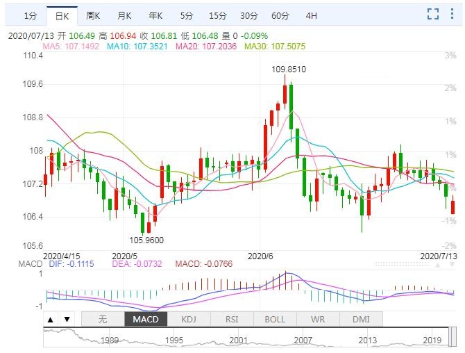 市场关注下周将于7月15日结束的日本央行会议,预计会维持政策不变。BrownBrothersHarriman的外汇策略主管WinThin表示,目前市场情绪多变,业内机构均预计其在宽松政策上不会有新措施跟进,而这可能在近期 美元指数承压的背景下继续推升日元汇价, 美元兑日元可能跌向106心理关口。