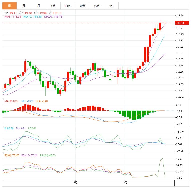 如果在楔形障碍处遭到拒绝,该价格可能会回到上升趋势线(楔形)支撑位118.95,在此下方上升的21简单移动均线(SMA) 118.82将会受到挑战。
