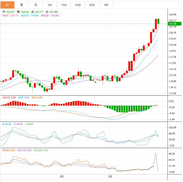 技术面上,美元兑日元昨日走势强劲,突破等待的目标121.70并达到122.40,注意到价格从那里开始看跌反弹,开始从114.65区域开始的看跌修正,主要朝向访问120.60。