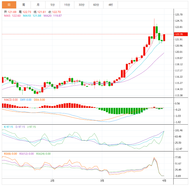 技术面上,美元兑日元今日开盘明显看涨,突破修正看跌通道阻力,目前触及122.62水平,暗示将恢复主要看涨趋势,需要突破上述水平才能确认打开获得更多收益的途径从 123.40 开始并延伸至 125.00。