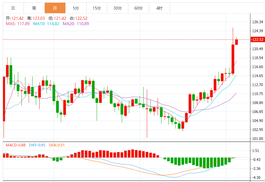 3月外汇市场跌的最惨的货币——日元。此前市场一度认为,卢布当之无疑。结果日元经历“历史性”暴跌行情。截止3月31日收盘,美元/日元3月累计涨幅接近6%,交投于121.60附近。