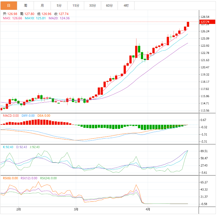 从技术面来看,美元/日元的日线图显示,价格仍准备进一步向北收复地面,特别是在多头前一天拿下上升趋势线阻力位126.67之后。也就是说,该货币对可能会延长升势,重新测试128.00点。