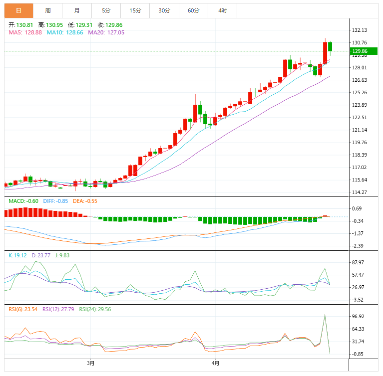 向上,美元兑日元的首个阻力位将是130.00。若突破该水准,将会触及131.00,随后将触及131.25附近的数十年高位。另一方面,美元兑日元的第一个支撑位将是129.00。若升穿后者,将触及4月129.40的日高,之后将触及4月28日低点128.33。