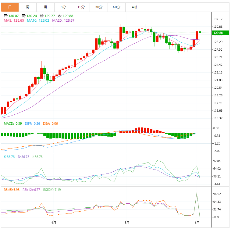 技术面上,美元兑日元向上反弹,成功达到我们的第一个目标 130.00 并在此附近收盘,等待进一步上涨以访问近期记录的高点 131.35 作为下一个主要目标。