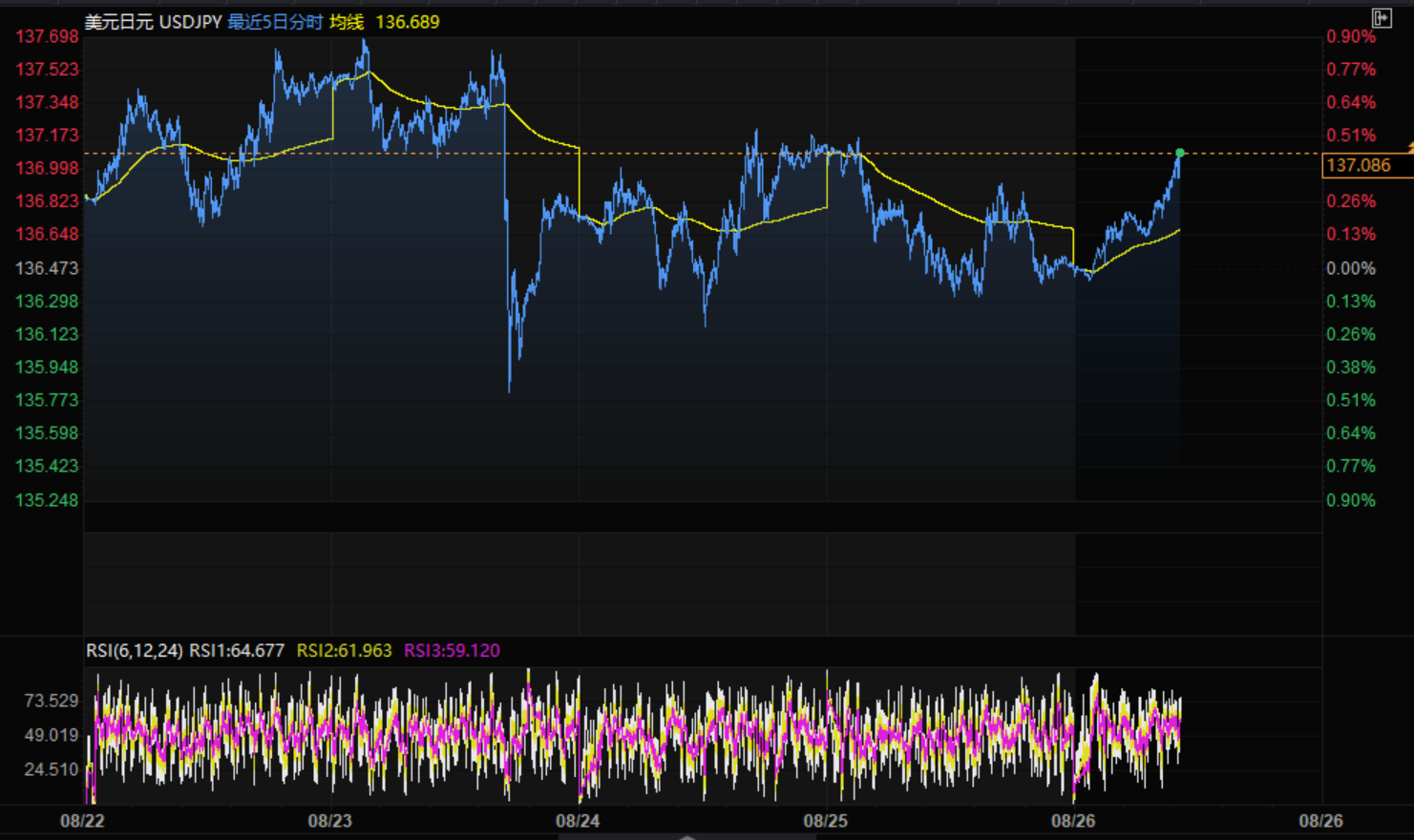 基本面上,杰克逊·霍尔经济研讨会上全球智囊团领导人的讲话前景并不明确,市场参与者正寻求避险。美联储主席鲍威尔讲话成为焦点,原因是投资者将借此对美联储9月货币政策会议上可能采取的措施获得实际信号。日本方面,即使通胀达到3%,日本央行(BOJ) 仍将坚持审慎政策,日元将进一步全面下滑。日本央行实施审慎政策立场不仅在于通胀水平低迷,还在于劳动力成本指数停滞不前。