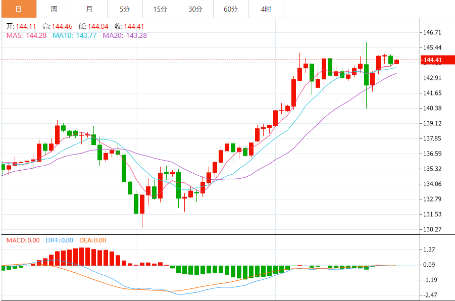 关键阻力位:147.63 145.00 主要支撑位:139.98