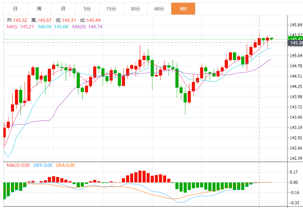 技术上,日图仍在高位震荡,146为短期关键阻力,下方支持143.50。