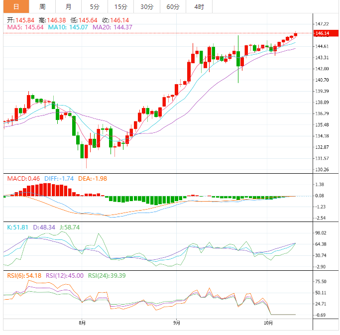 基本面上,美元/日元飙升至145.90关键水平,日本内阁官房长官松野博一发表了讲话。美元/日元处于24年来的最高水平146.38,当日上涨0.34%,投资者对日本外汇市场的干预政策严阵以待。
