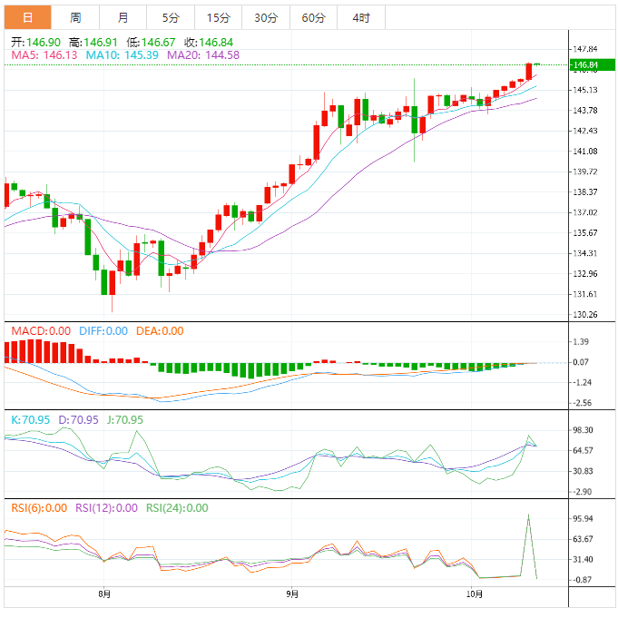 周三,美元兑日元汇率攀升至24年新高,尽管目前的高水平已令一些观察人士预期央行会进行干预。日本在9月22日进行了自1998年以来的首次干预汇市,当时美元兑日圆报145.90日圆。尽管如此,在日本央行总裁黑田东彦誓言将维持宽松的货币政策以支持经济复苏后,交易商卖出日圆获得了许可。黑田东彦表示,弱势货币可能对经济有利。