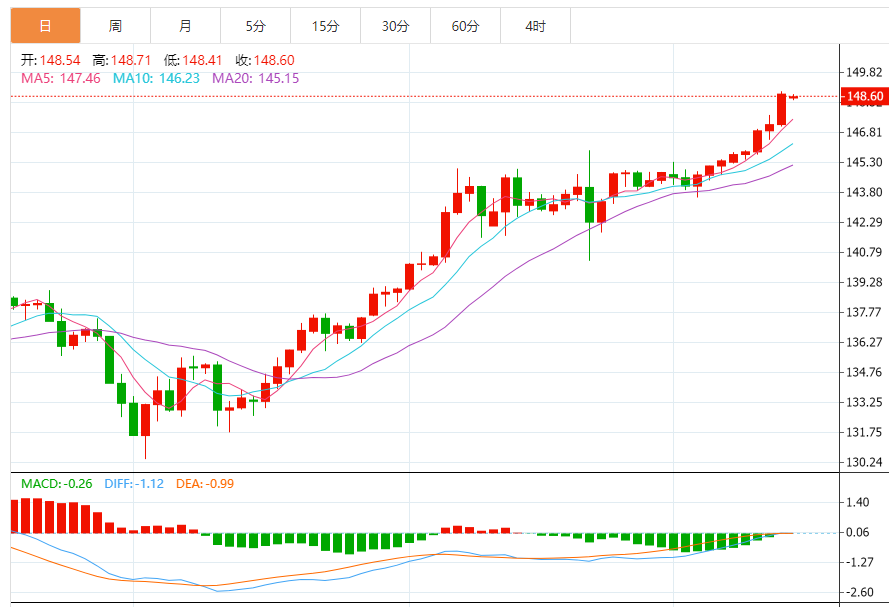 技术上,自三个月上升阻力线149.10附近明显回调指引美元兑日元空头指向叁週前的上升支撑线,目前该线位于146.30。