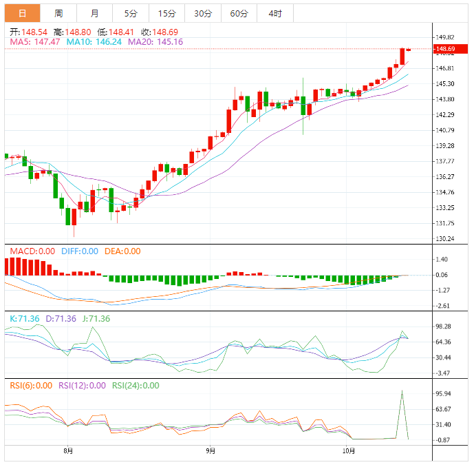 近一个月前,日本当局抛售美元/日元,为日元提供一定的价格稳定。当时的高点是145.90,现在交易在148之上,因为市场正在盯着150这一重要心理关口。