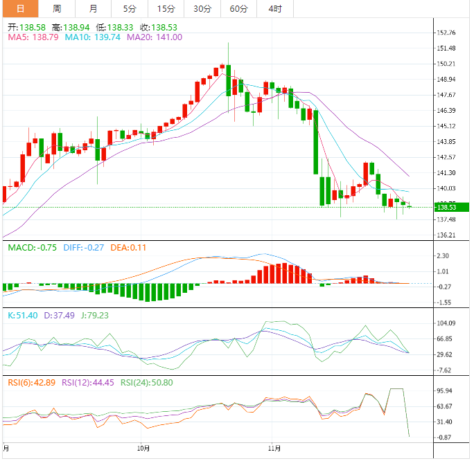 基本面上,美元/日元下跌至138.70附近,连跌三日。即便如此,汇价已反弹脱离盘中低点考验空头。值得注意的是,汇价进一步下跌似乎受限,因为相对强弱指标接近超卖区域。因此自9月底以来的下降支撑线似乎为美元/日元空头关注重点,该线接近136.90。目前,市场关注的焦点仍将集中在美联储主席鲍威尔预定的讲话上,市场将从其讲话中寻找未来加息的蛛丝马迹。这将在影响美元价格动态方面发挥关键作用,并在周五关键的美国就业数据(NFP)公佈之前为美元兑日元提供一些有意义的推动力。