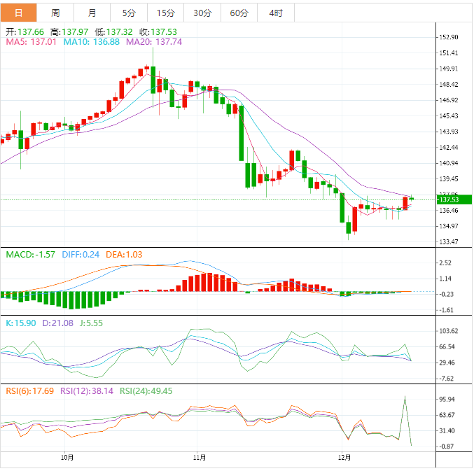 基本面上,美元/日元在亚市刷新数日高点后于欧市早盘逐步走高至137.70附近,缺乏方向。汇价最新徘徊可能与缺乏重要数据/事件以及美国11月消费者物价指数(CPI)公佈之前市场情绪谨慎有关。应该要注意的是,围绕日本央行下一步行动的担忧不一且美债收益率疲软也限制了美元/日元短期波动。展望未来,市场信号不一以及围绕中国和俄罗斯的担忧可能限制美元兑日元在美国通胀数据前的波动。不过在近期美联储鹰派押注之际,若美国通胀率上升,将迅速唤醒该货币对多头,预计美国11月通胀率年率录得7.3%,前值7.7%。
